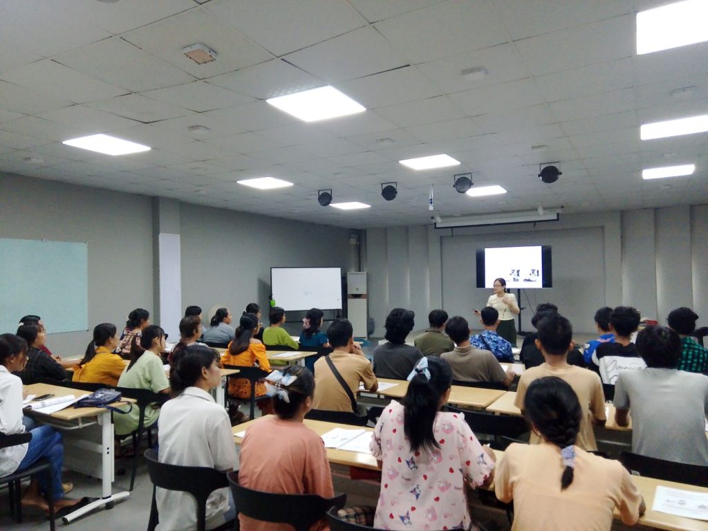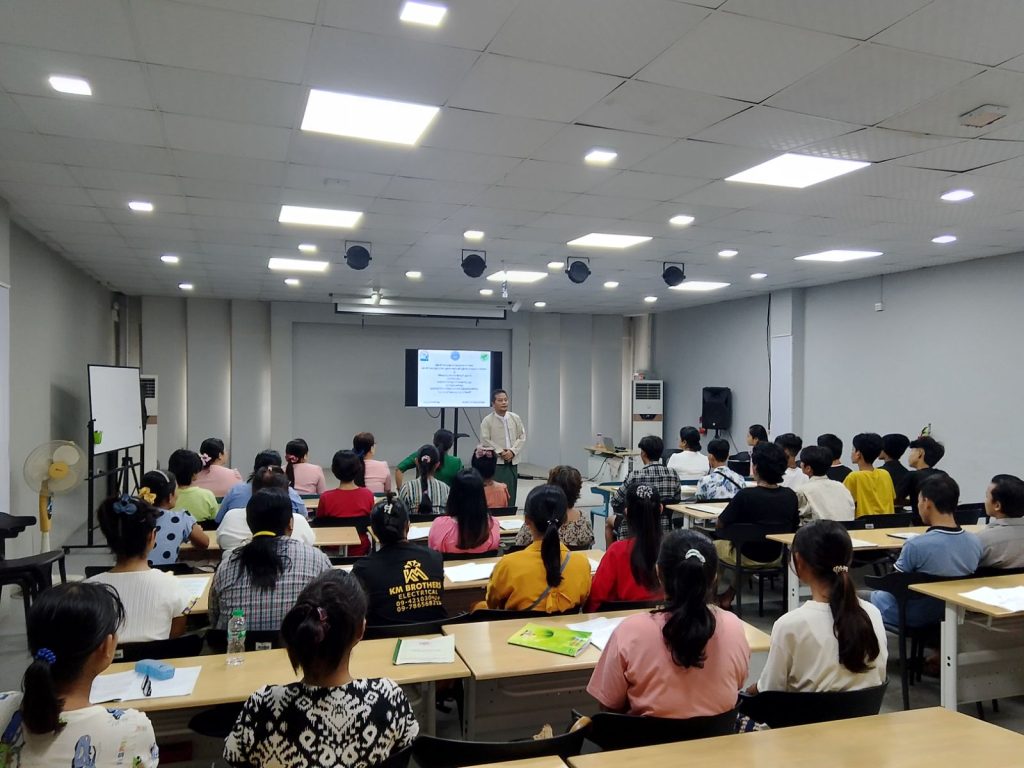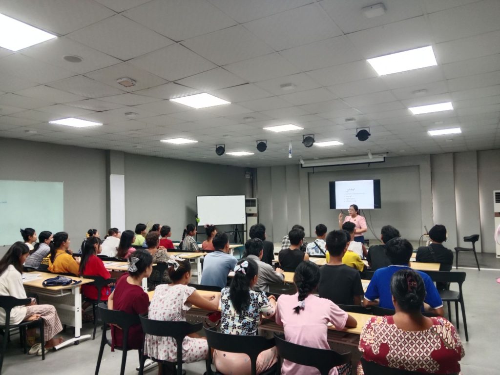 Principle of GTHS U Zayar Aung gave opening remarks. In this training, training instructor from MGHRDC lectured knowledge of sewing and sewing method step by step with practice session.