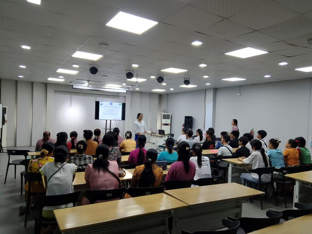 MGMA conducted the awareness of labour law in factory and gave safe migration knowledge by International Organization of Migration, IOM , UN Migration. Associate Professor of GTHS Daw Htwe Htwe Soe gave closing remarks. Total (36) trainees attended the training and awarded certificate.