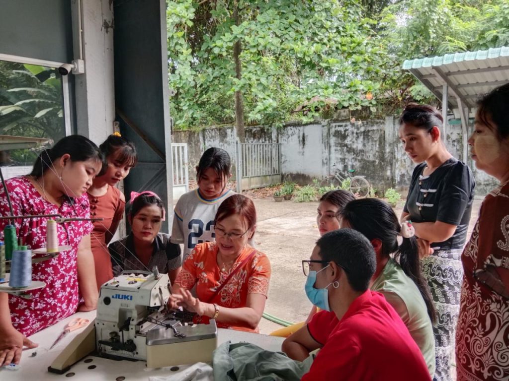 Principle of GTHS U Zayar Aung gave opening and closing remarks. In this training, training instructor from MGHRDC lectured knowledge of sewing and sewing method step by step with practice session.