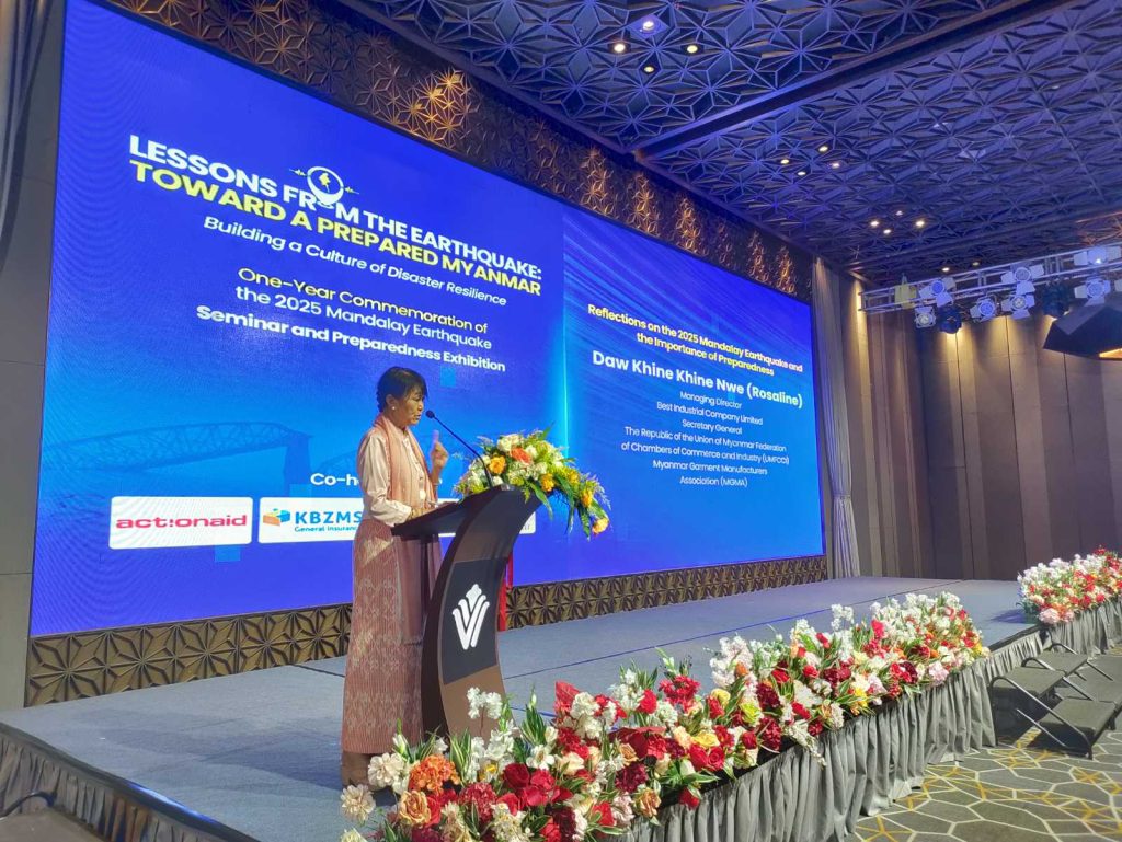 The event brought together international organizations, private sector leaders, and industry stakeholders to reflect on lessons learned from the earthquake and to strengthen disaster preparedness efforts across Myanmar, organized by ActionAid Myanmar, KBZMS General Insurance, CIAT Myanmar and British Chamber of Commerce Myanmar.