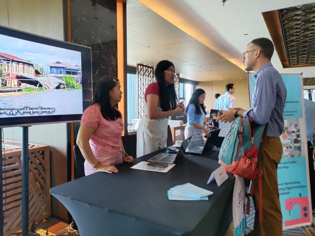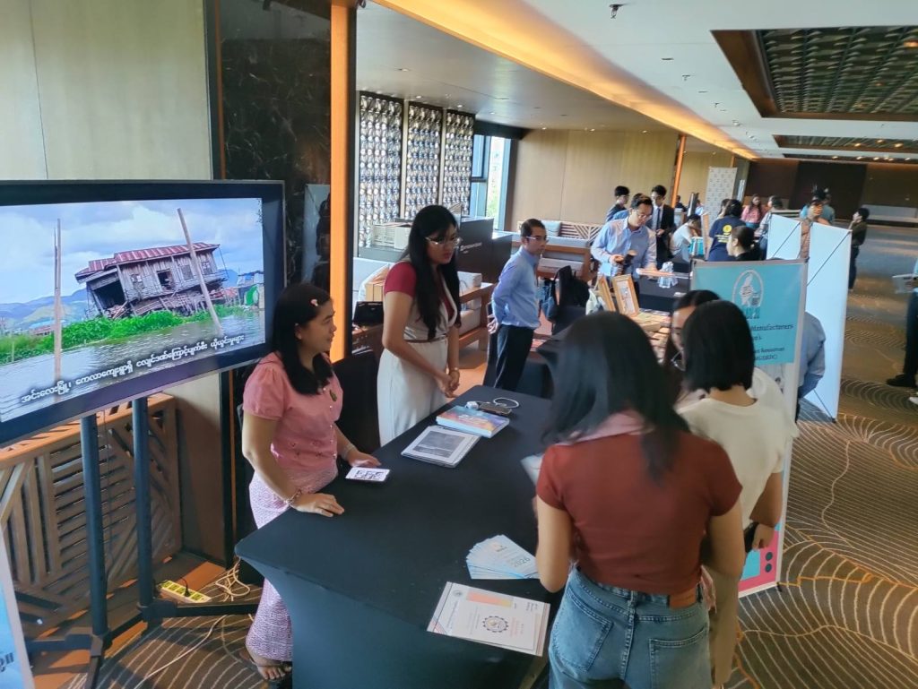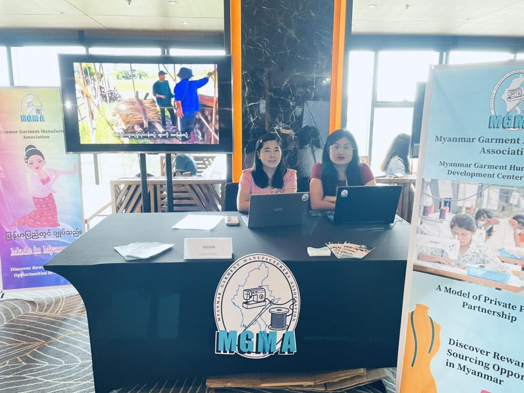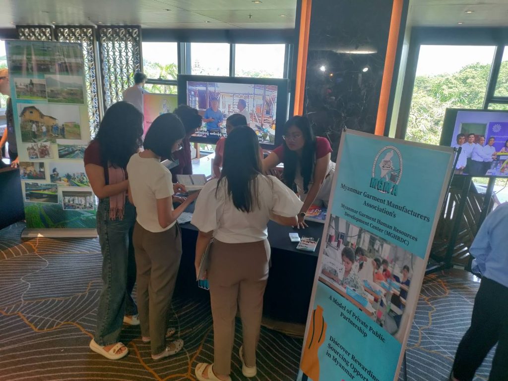 Daw Khine Khine Nwe, Secretary General of UMFCCI and MGMA, presented Earthquake response experiences and CSR activities of MGMA, then MGMA display relief and rehabilitation process after earthquake at MGMA booth.