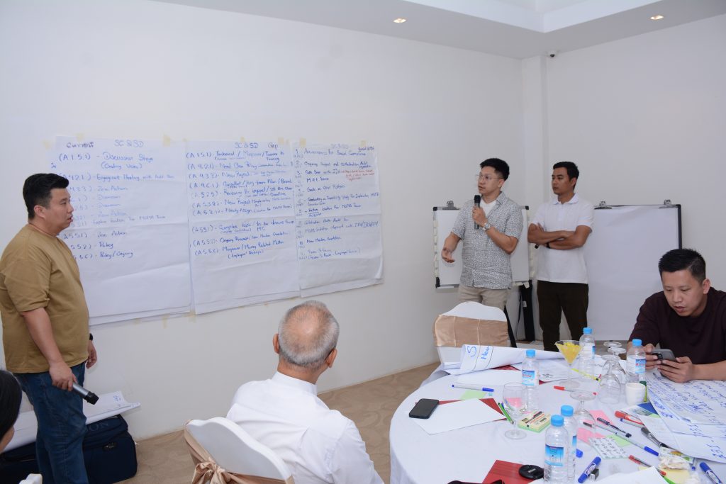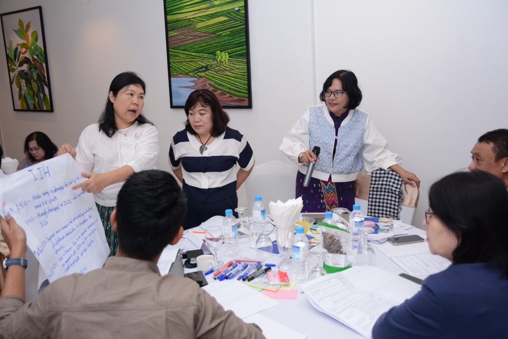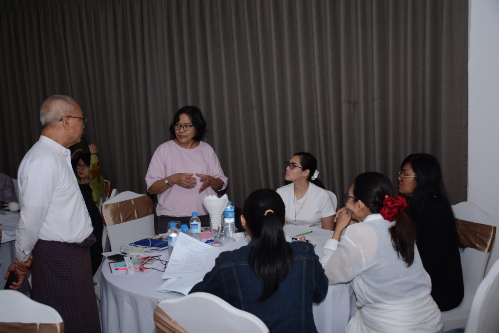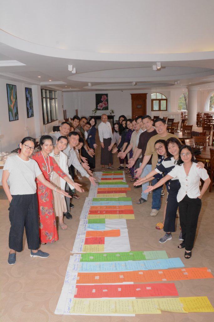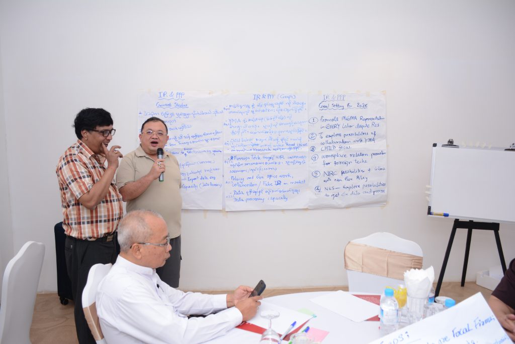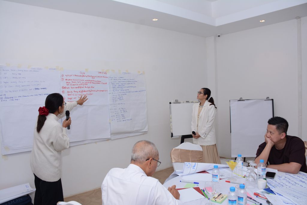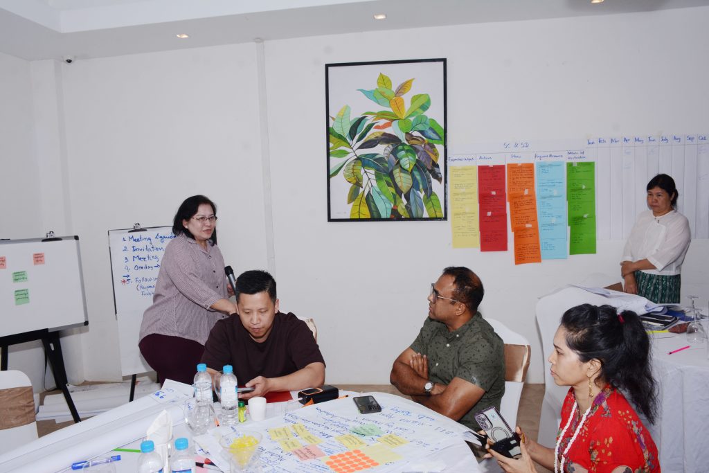 In the workshop , 5 working groups reviewed activities, output, impact under 2025 timeline, facilitated by Daw Kay Thi and team from Future Development Initiative Learning Hub (FDILH). 5 working groups presented the goal, gaps, current status for activities of 2026 and the working group members exchanged mutual suggestions. Then design 1year action plan for 2026 and defined monitoring procedure.