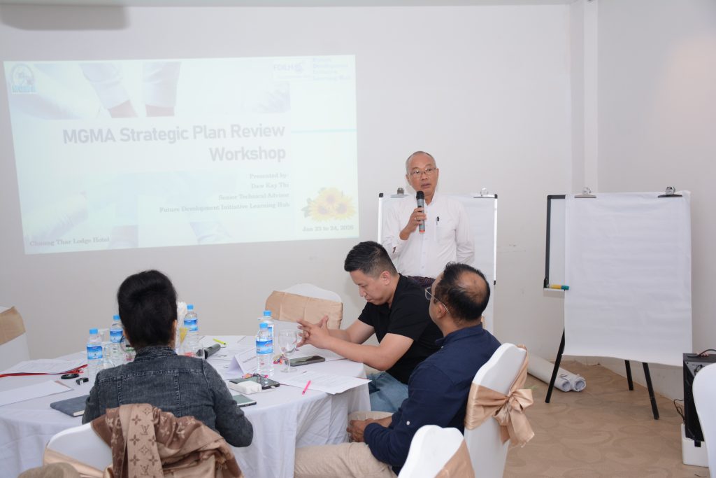 MGMA Strategic Plan Review Workshop was held on January 23th and 24th, 2026 at Chaung Thar Lodge.The meeting was kicked off opening speech by Chairman of MGMA, U Myint Soe and then gave welcome remarks and explained objective of workshop by Managing Director of MGMA, Daw Aye Mi Shein.