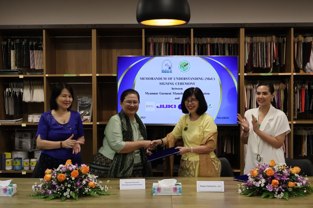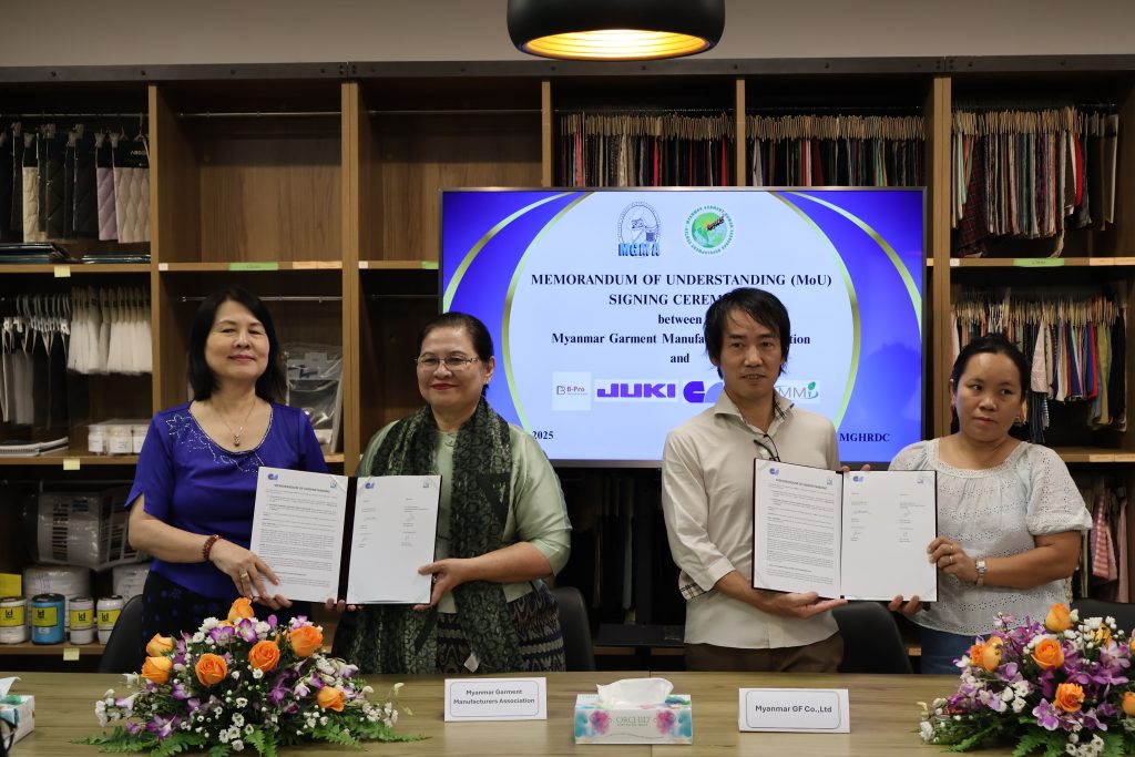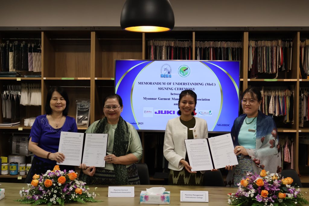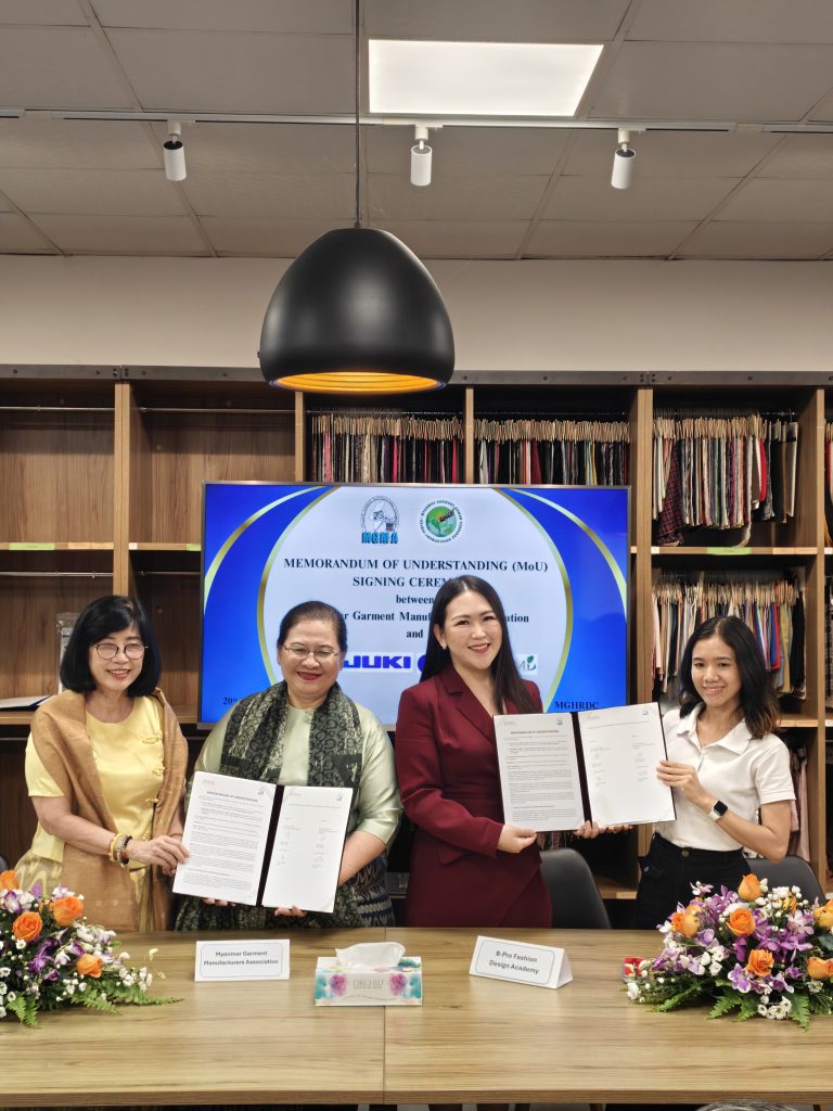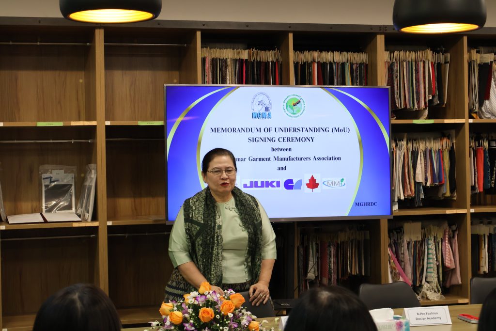 After that, memorandum of understanding (MoU) signed between MGMA and 5 Partners that B- Pro Fashion Design Academy, JUKI SINGAPORE PTE Ltd, BRANCH OFFICE (Yangon, Myanmar), Myanmar GF Co.,Ltd, Maple Trading Co.,Ltd, Myanmar Management International College.