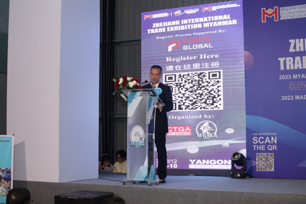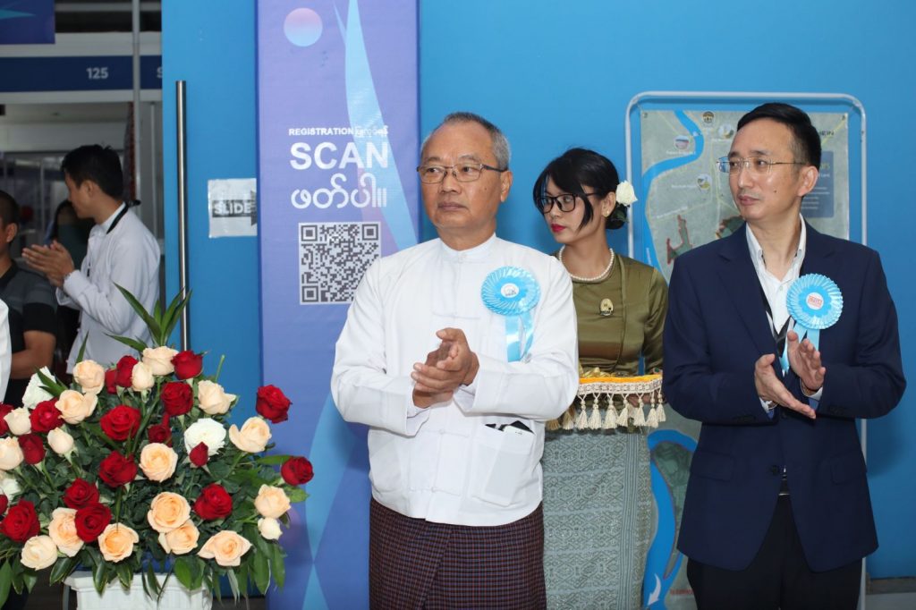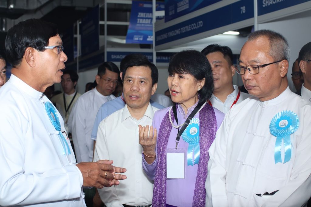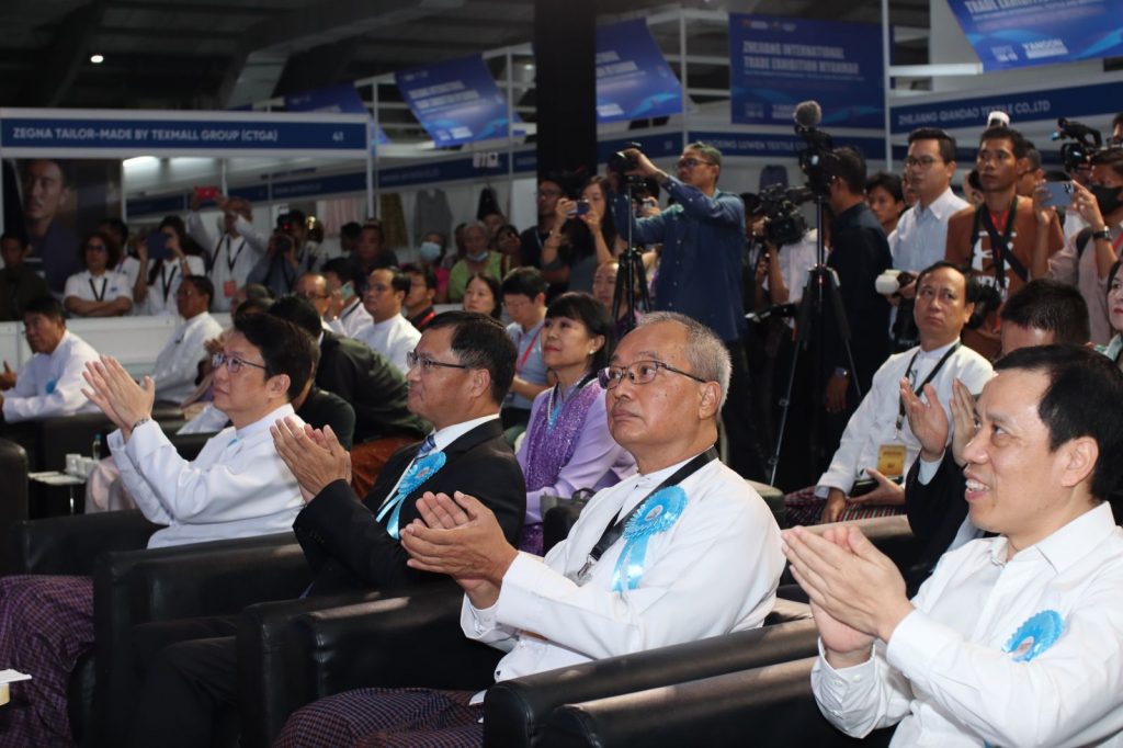 The delegation from Yangon Region Government, Ministry of Commerce, China Chamber of Commerce for Import and Export of Textiles, China Embassy, Foreign Trade Development Department of Commerce of Zhejiang province, UMFCCI, CECCM, MGMA, CTGA, JGMA, KOGAM opened the Expo by ribbon cutting successfully.