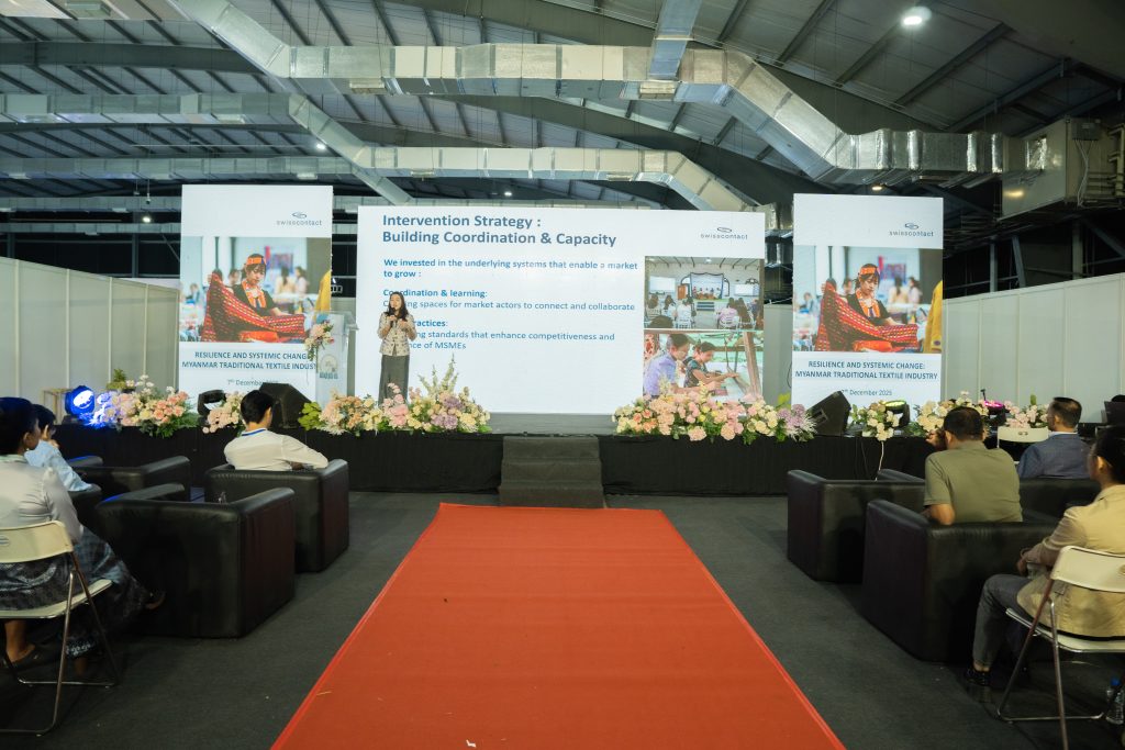 On December 7, extend to held seminar by MSMEs textile by Swiss Contact, Myanmar Citizens Bank (MCB), Method Apparel Consultancy presented their services and project planning in Myanmar garment industry. Then, business matching with exhibitors in garment, textile and textile machinery with factories members and relevant stakeholders.